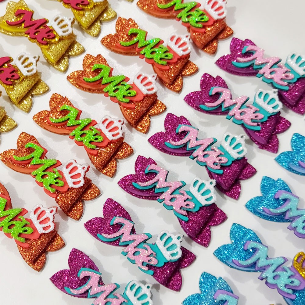 Laços PET modelo adesivado em EVA com glitter para penteados de ALTA qualidade contendo diversas cores.