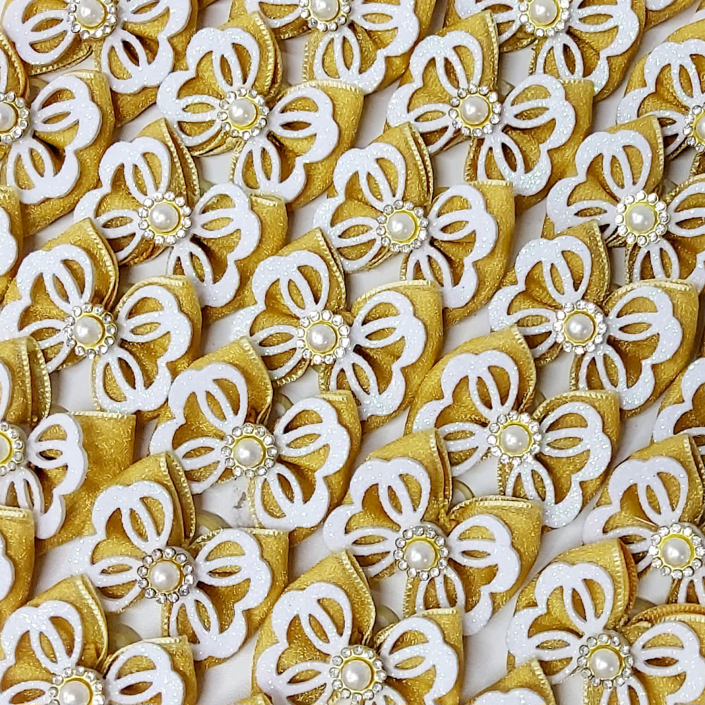 Laço Borboleta Duplo Voil EVA Pedraria Ano Novo - 10 unidades
