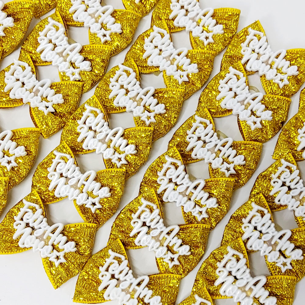 LAÇO BORBOLETA LUREX COM BOTÃO DE ANO NOVO